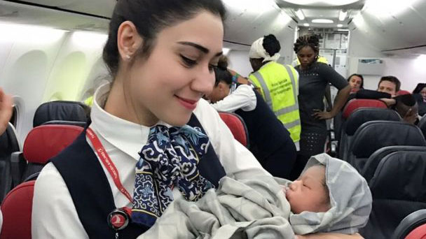 土耳其航空公司一班客機飛行途中突然多了一名乘客。原來,一名孕婦在42000英尺(12800米)的高空早產并順利生下女嬰。