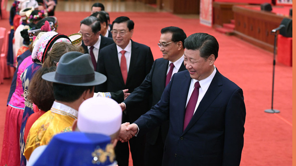 中華民族一家親,同心共筑中國夢。中共中央統戰部、全國人大民族委員會、國家民族事務委員會、全國政協民族和宗教委員會11日晚在北京人民大會堂舉行茶話會。