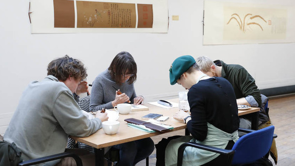 2月16日至24日,英國(guó)王儲(chǔ)傳統(tǒng)藝術(shù)學(xué)院舉辦“十竹齋木版水印藝術(shù)傳承”文獻(xiàn)作品展,十竹齋木版水印非遺傳承人魏立中在展覽期間向?qū)W員傳授木版水印技藝。