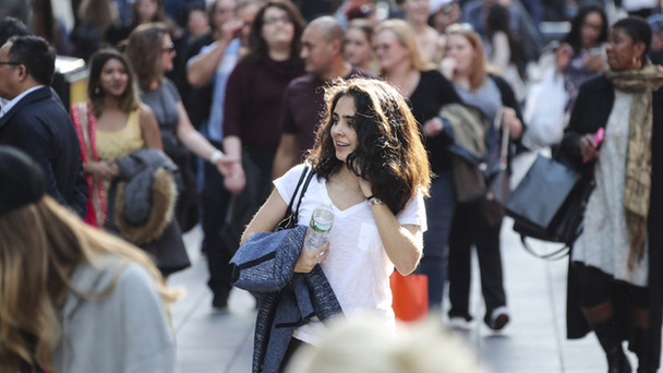迎溫暖天氣 紐約人脫下冬裝享受陽(yáng)光