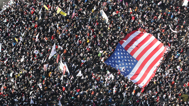 韓國樸槿惠支持者舉美國國旗集會示威
