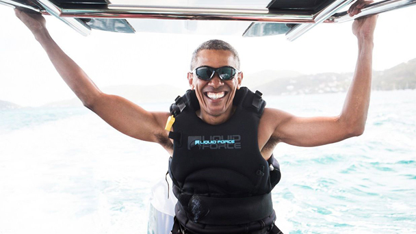 奧巴馬卸任之后度假歡 玩起沖浪秀肌肉