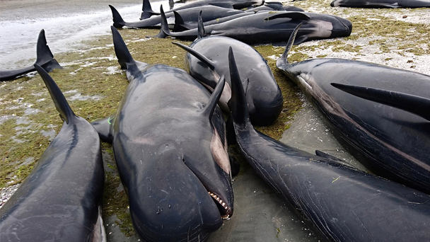 新西蘭海灘現大量巨頭鯨擱淺 規模罕見
