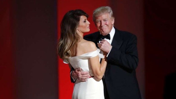 總統(tǒng)特朗普現(xiàn)身就職舞會(huì) 化身“害羞暖男”