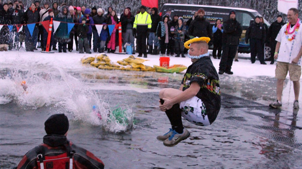當地時間17日,美國阿拉斯加州安克雷奇舉行了一場別開生面的“極地跳水”活動,有超過1000名民眾參與到了這個活動當中。