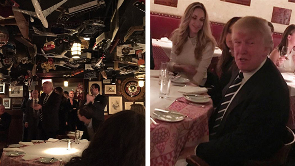 11月15日晚,美國當選總統唐納德·特朗普躲過記者的視線,悄悄“溜出”他所在的特朗普大廈,與自己的家人一同到紐約市中心一家知名的牛排店共進晚餐。