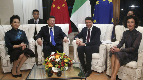 11月16日,國家主席習近平在意大利撒丁島會見意大利總理倫齊。