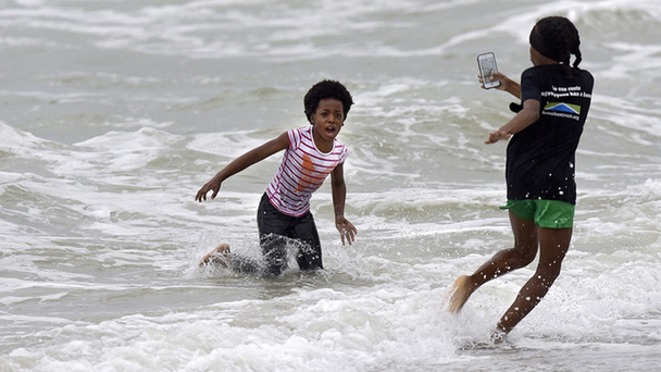 颶風“馬修”直擊美東南 民眾戲水熱情不減