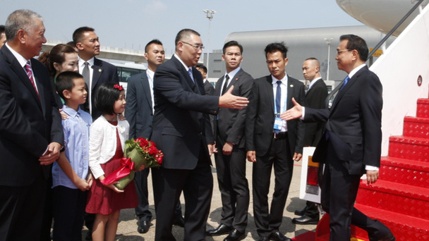 10月10日11時28分,李克強總理踏上了澳門土地,這是他首次視察澳門。澳門特區行政長官崔世安登機迎請總理。