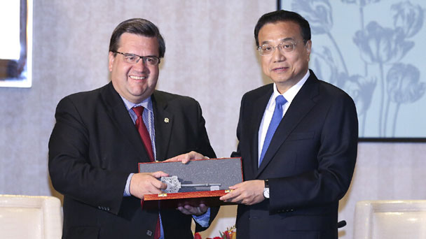 李克強會見蒙特利爾市長并接受城市榮譽鑰匙