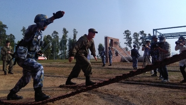 9月13日,參加中俄“海上聯(lián)合-2016”軍事演習的雙方陸戰(zhàn)隊員在海軍陸戰(zhàn)隊綜合訓練場開展了聯(lián)合訓練。期間,雙方進行了輕武器實彈射擊、400米障礙等科目的訓練。