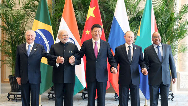 9月4日,金磚國家領導人非正式會晤在杭州舉行,國家主席習近平、印度總理莫迪、南非總統祖馬、巴西總統特梅爾、俄羅斯總統普京出席。