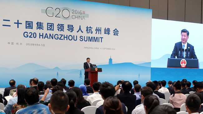 9月5日,二十國集團領導人第十一次峰會閉幕后,國家主席習近平在杭州國際博覽中心會見中外記者。