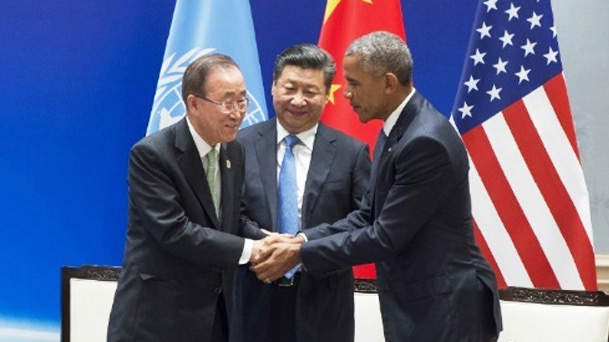 國(guó)家主席習(xí)近平3日同美國(guó)總統(tǒng)奧巴馬、聯(lián)合國(guó)秘書長(zhǎng)潘基文在杭州共同出席氣候變化《巴黎協(xié)定》批準(zhǔn)文書交存儀式。