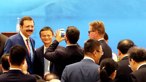 二十國(guó)集團(tuán)工商峰會(huì)開幕式上,馬云成為不少前排嘉賓要求合影的明星。