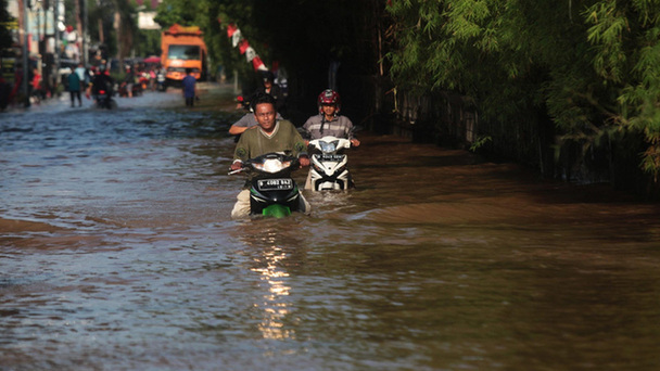 印尼首都遭暴雨襲擊引發洪水 街道被淹沒