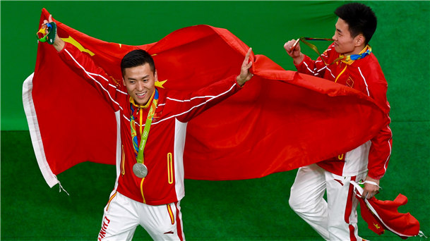 男子蹦床決賽,中國選手董棟以精彩完美的跳躍,得到60.535分,獲得銀牌!另一名中國選手高磊則以60.175分摘得銅牌!