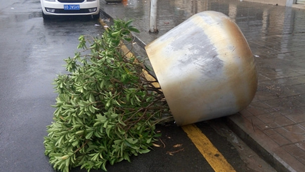 臺風“妮妲”登陸,樹枝被吹斷,街頭一片狼藉。