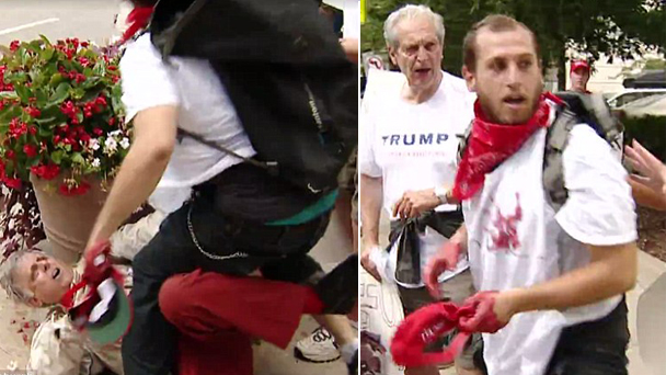 7月30日,美國民主黨總統候選人希拉里的一名支持者在匹茲堡市民主黨候選人集會外因襲擊一位特朗普的擁躉而被捕。