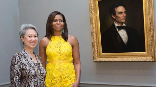 陪新加坡總理夫人訪藝術館 米歇爾黃裙搶鏡