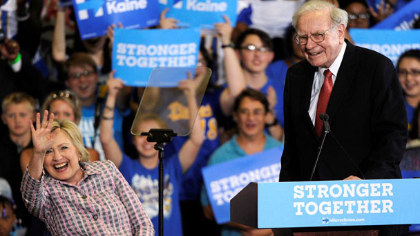巴菲特為希拉里助陣 內布拉斯加州發表演講