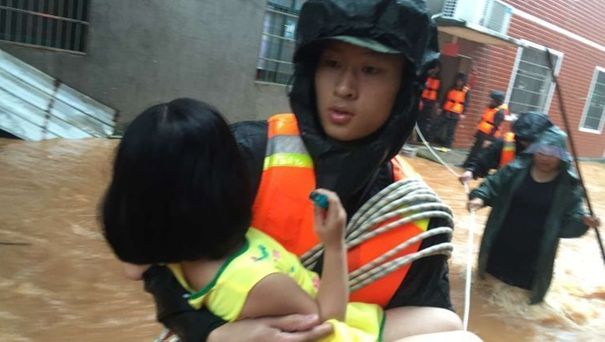 咸寧市7月4日遭遇強降雨襲擊,楊下村三棟居民樓發生洪澇災害被淹。經過1個多小時的努力,消防官兵安全轉移被困居民53人。