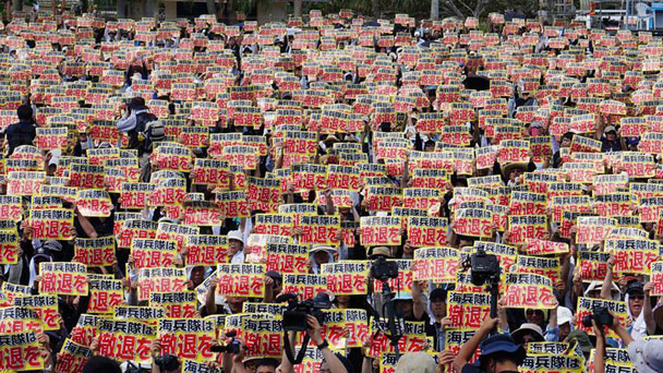 日本沖繩數萬人集會 抗議駐日美軍殘虐暴行