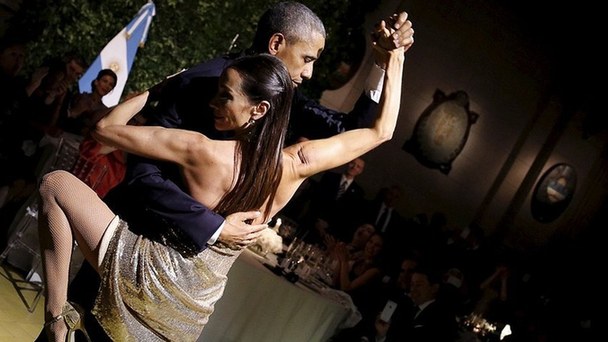 美國總統奧巴馬在結束對古巴的訪問后,于當地時間3月23日凌晨抵達阿根廷,開始為期兩天的正式訪問。晚宴期間,奧巴馬更與當地舞者共跳一曲熱辣探戈。