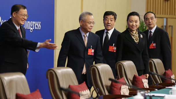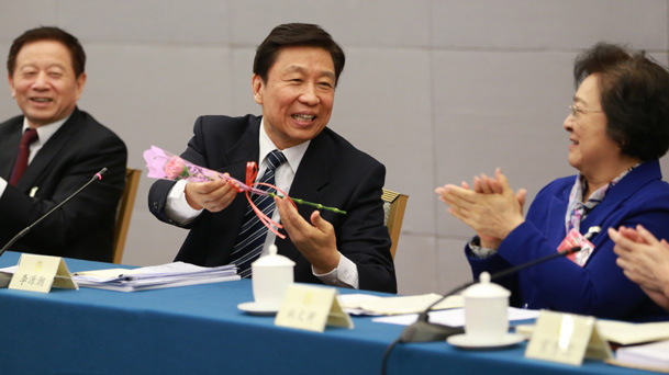 李源潮參加婦聯界別聯組討論 向女委員獻花