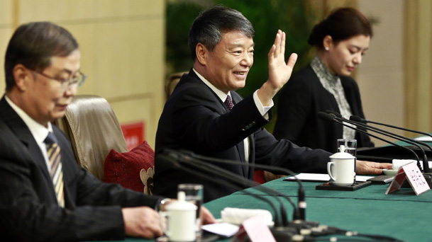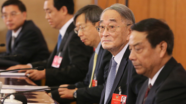 3月6日,全國政協十二屆四次會議在北京人民大會堂新聞發布廳召開記者會,邀請全國政協委員厲以寧、陳錫文、易綱、常振明、許家印就“十三五”經濟發展問題回答記者提問。