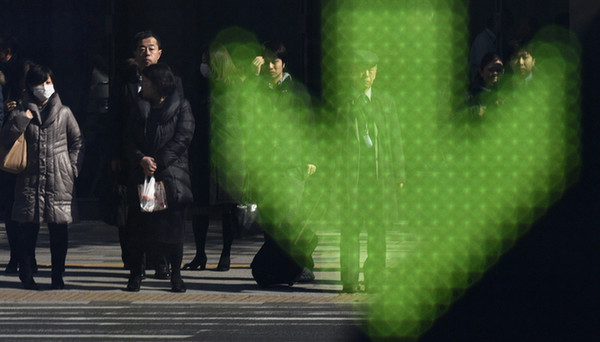 日本內閣府周一公布的2015年第四季度(10月至12月)國內生產總值(GDP、季節調整值)初值顯示,剔除物價變動因素后比上季度實際減少0.4%,換算成年率為下滑1.4%,兩個季度以來首次呈現負增長。