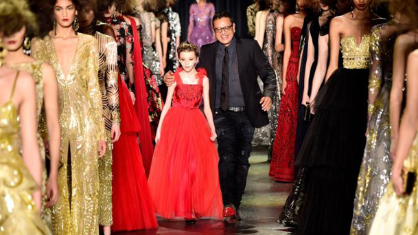 在2月17日紐約時裝周的舞臺上,印度裔設計師納伊?姆汗不僅展示了他充滿藝術感的華服設計,還帶著一名身患癌癥的女孩登上T臺,實現她作為一個小女孩的夢想。