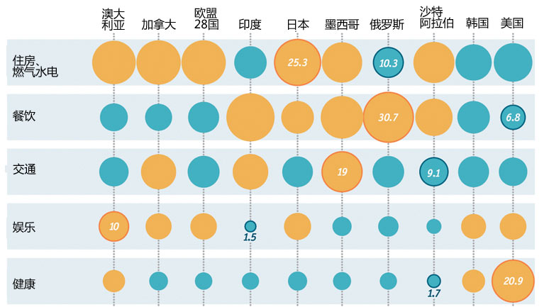 圖解:各國居民如何分配自己的家庭開支?