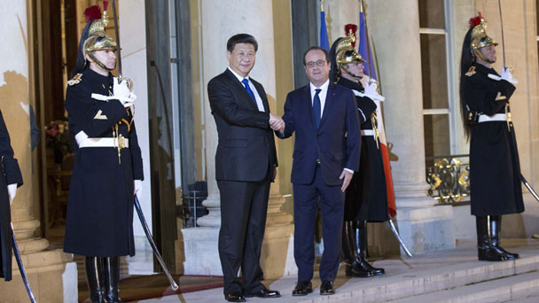 11月29日,國家主席習近平在巴黎會見法國總統奧朗德。