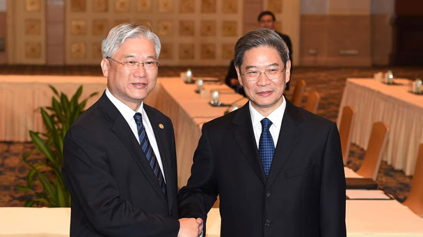 中共中央臺灣工作辦公室、國務院臺灣事務辦公室主任張志軍4日宣布,經兩岸有關方面協商,兩岸領導人習近平、馬英九將于11月7日在新加坡會面,就推進兩岸關系和平發展交換意見。