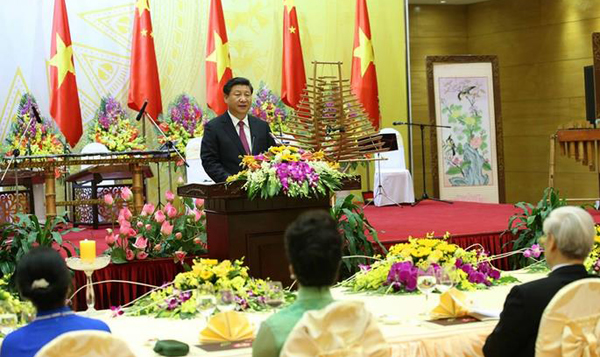 晚宴開始后,阮富仲和習近平分別致辭,強調中越關系不斷向前發展為兩國人民帶來實實在在的好處,雙方要共同推動中越全面戰略合作伙伴關系長期健康穩定發展。習近平在致辭中指出,我們深切感受到越南人民對中國人民的友好情誼,深切感受到中越傳統友誼的深厚基礎。中方愿同越方一道,繼續遵循長期穩定、面向未來、睦鄰友好、全面合作的方針和好鄰居、好朋友、好同志、好伙伴的精神,推動中越全面戰略合作伙伴關系不斷向前發展。