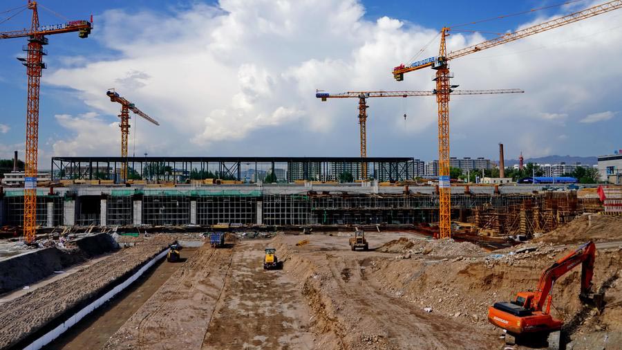 6月11日,工人在京張高鐵張家口市宣化北站施工。京張高鐵還將與正在建設(shè)的呼(呼和浩特)張(張家口)鐵路客運(yùn)專線工程和張(張家口)大(大同)城際專線工程相連接,一張快速客運(yùn)網(wǎng)將在華北北部形成。