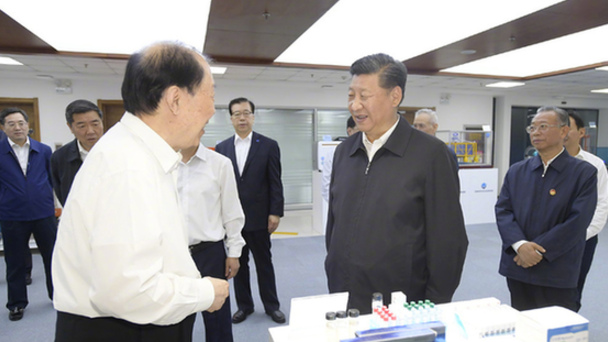 在出席上海合作組織青島峰會后,習(xí)近平開始在山東考察。”  習(xí)近平在青島海洋科學(xué)與技術(shù)試點國家實驗室,聽取了中國工程院院士管華詩關(guān)于海洋藥物研發(fā)情況的介紹。(記者張曉松、謝環(huán)馳)(點擊觀看視頻)  習(xí)近平乘船赴威海灣的劉公島考察  12日下午,習(xí)近平離開青島,乘火車抵達(dá)威海后,隨即趕往碼頭,乘船前往膠東(威海)黨性教育基地劉公島教學(xué)區(qū)。