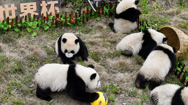 2018年俄羅斯世界杯前夕,中國大熊貓保護(hù)研究中心在臥龍神樹坪基地為8只不滿一歲的熊貓寶寶舉辦了一場趣味橫生的熊貓“足球賽”,為世界杯開幕助威。