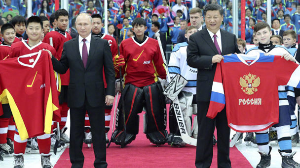 習(xí)近平同普京共同觀看中俄青少年冰球友誼賽