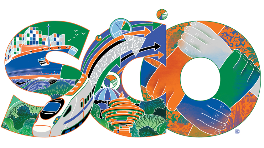 這是在青島市市南區東海路拍攝的沿街景觀(5月31日攝)。隨著上合組織青島峰會的臨近,青島市主城區道路兩側張燈結彩,五彩繽紛的花卉、綠植景觀營造出濃郁的盛會氛圍,喜迎賓朋。
