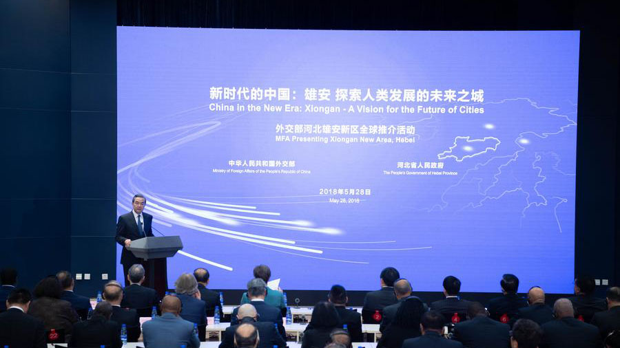 5月28日,以“新時代的中國:雄安 探索人類發展的未來之城”為主題的外交部第十三場省區市全球推介活動在外交部藍廳舉行。