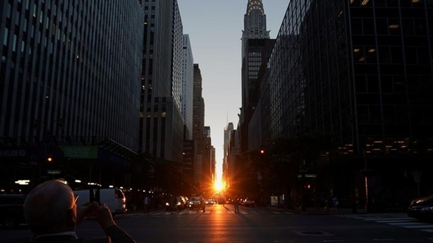 曼哈頓懸日場景壯觀 民眾上街拍照