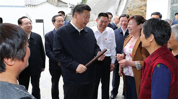 4月24日下午,中共中央總書記、國家主席、中央軍委主席習近平來到緊鄰三峽大壩的宜昌市夷陵區太平溪鎮許家沖村,了解這個移民村的變遷和發展特色產業等情況。
