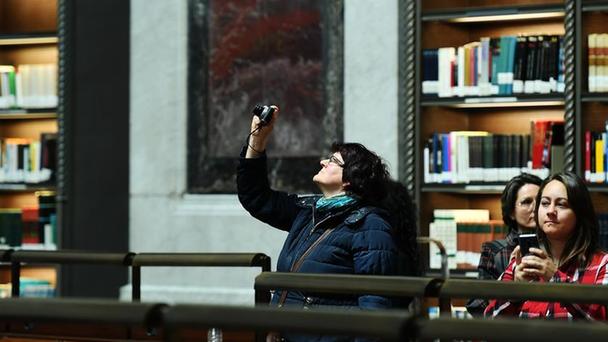 位于馬德里的西班牙國家圖書館15日迎來一年一度的公眾開放日。市民在工作人員的帶領(lǐng)下,參觀圖書館的閱覽、藏書、辦公、多媒體、古籍修復(fù)及歷史陳列等區(qū)域。