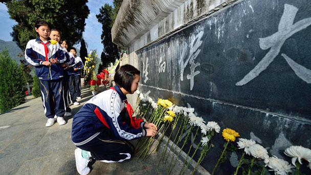4月4日,山東省棗莊市光明路小學(xué)的學(xué)生在棗莊革命烈士陵園向無(wú)名烈士墓碑獻(xiàn)花。清明將至,全國(guó)各地開展多種形式的祭掃及愛(ài)國(guó)主義教育活動(dòng),重溫歷史,緬懷先烈。清明將至,全國(guó)各地開展多種形式的祭掃及愛(ài)國(guó)主義教育活動(dòng),重溫歷史,緬懷先烈。