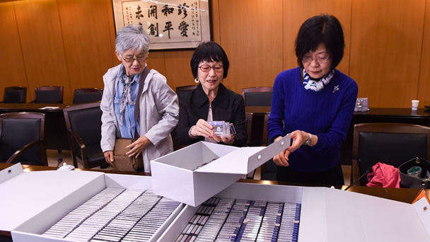 日本友人松岡環(huán)自1988年起近百次來(lái)到南京,在1998年至2006年間,松岡環(huán)訪問(wèn)了300多位南京大屠殺親歷者,曾將思路比較清晰的幸存者邀請(qǐng)到日本召開證言集會(huì),通過(guò)錄像、錄音留下了下數(shù)百盤珍貴的影像資料,此次全部捐贈(zèng)給了紀(jì)念館。