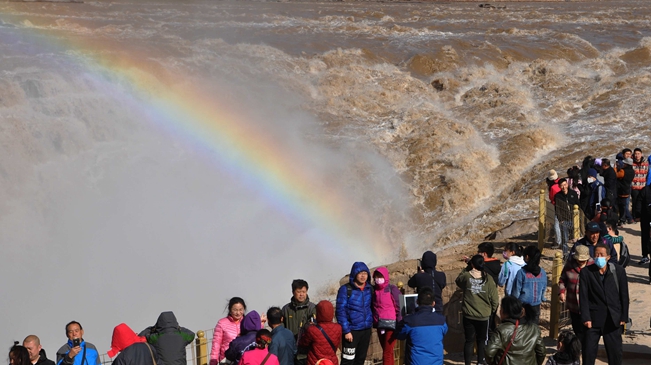 4月6日,眾多游客在山西吉縣黃河壺口瀑布景區(qū)游覽。新華社發(fā) 呂桂明 攝  4月6日,游客乘船在江蘇揚(yáng)州瘦西湖景區(qū)內(nèi)游覽。新華社發(fā) 劉建華 攝  4月6日,人們?cè)谖挥诮K無(wú)錫的江南大學(xué)牡丹園內(nèi)踏青賞花。