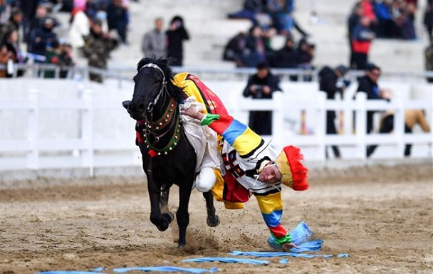 2月18日是藏歷新年初三,拉薩北郊賽馬場上演了一場傳統馬術表演。