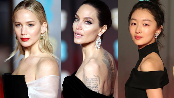 當地時間2018年2月18日,英國電影學院獎紅毯舉行。安吉麗娜·朱莉懶理前夫皮特,露肩長裙展背部紋身性感搶眼,與作家Loung Ung親密相擁。